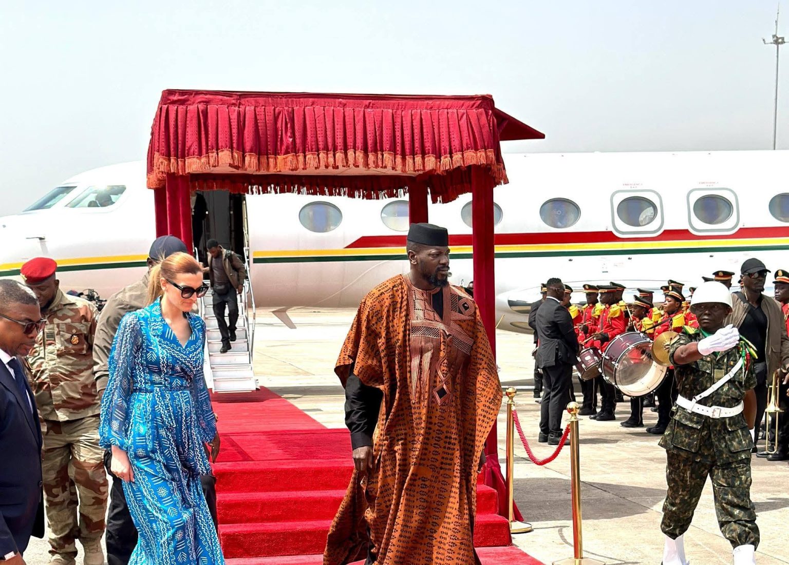 À son arrivée à l’Aéroport international Ahmed Sékou Touré, le Chef de l’État a été accueilli avec les honneurs par plusieurs hautes personnalités, notamment le Premier ministre, les présidents des institutions républicaines, les membres du cabinet présidentiel, dont le ministre secrétaire général de la Présidence, le Général Amara Camara, et le ministre directeur de cabinet de la Présidence, Djiba Diakité.